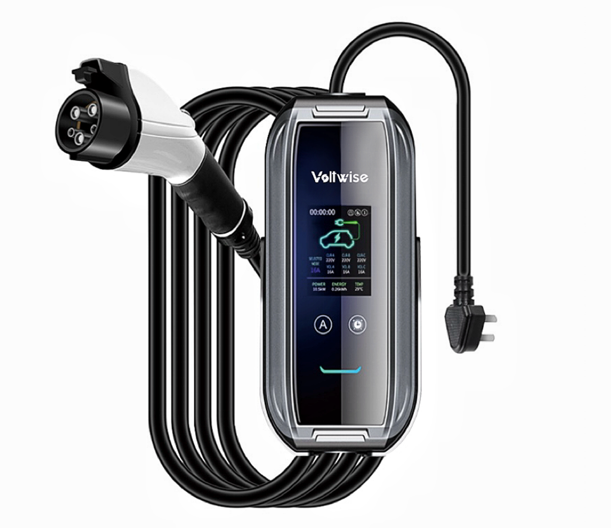 Os carregadores da Voltwise se destacam pelo design sofisticado e contemporâneo, que combina funcionalidade e estilo. Com acabamentos de alta qualidade, são perfeitos para ambientes residenciais e corporativos, oferecendo uma solução elegante e eficiente para a recarga de veículos elétricos.
